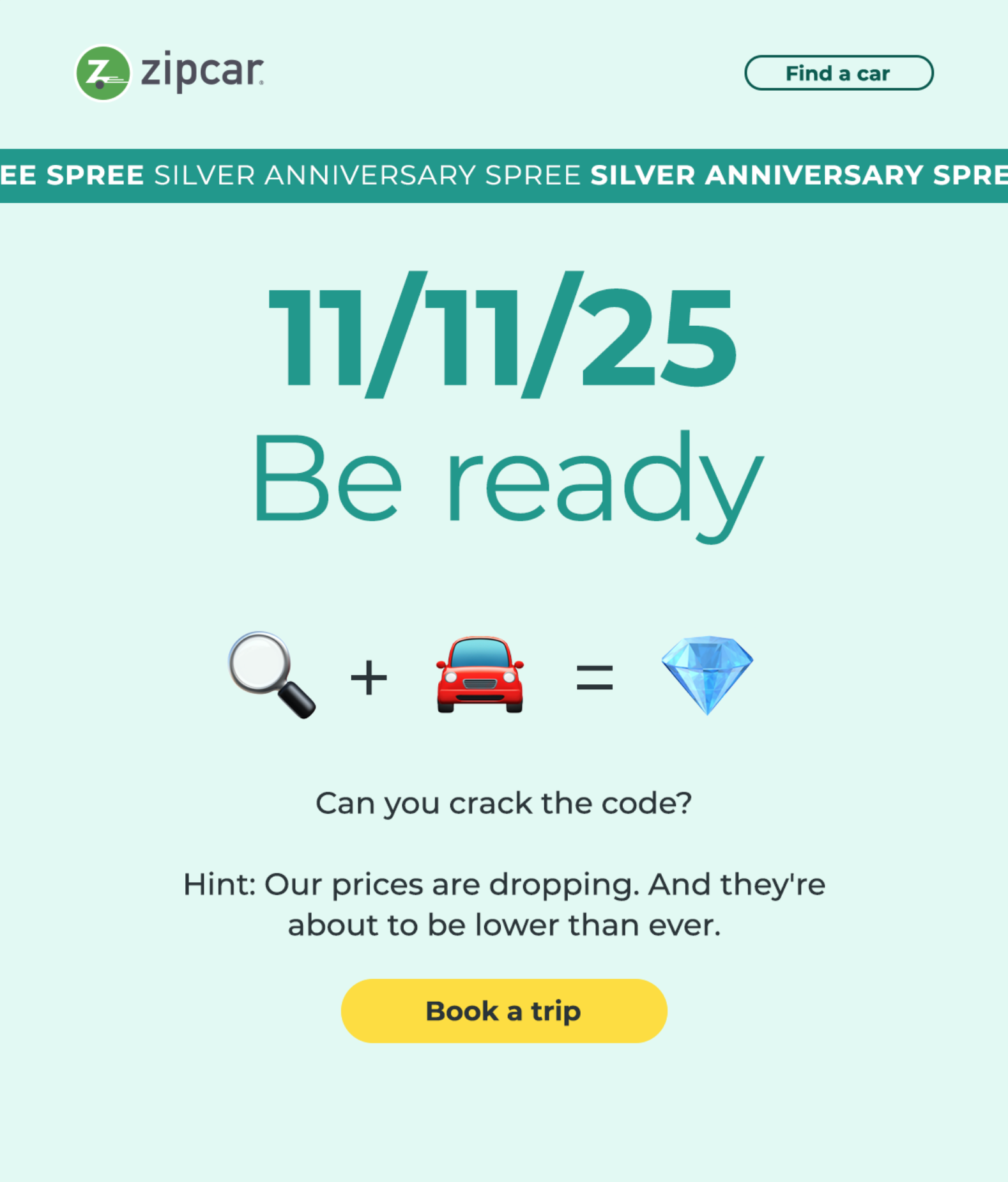 To drive more app searches and make our lower prices clear, we needed more than a typical promotion. So we offered select cars for $0 for the day and turned it into a “hidden gem” scavenger hunt. The gem gave the idea a playful anchor, drawing members into the app to search and book.