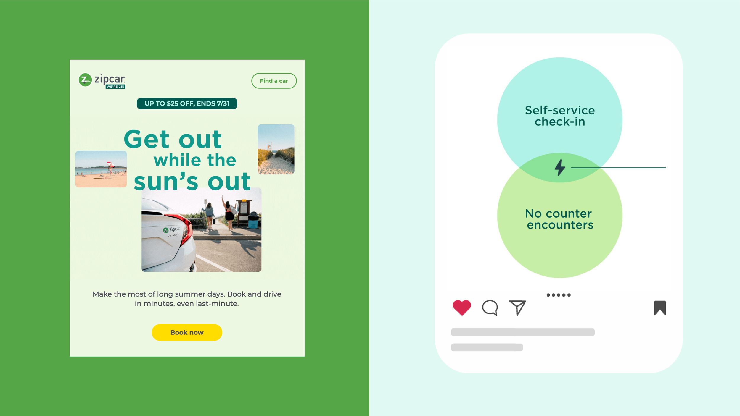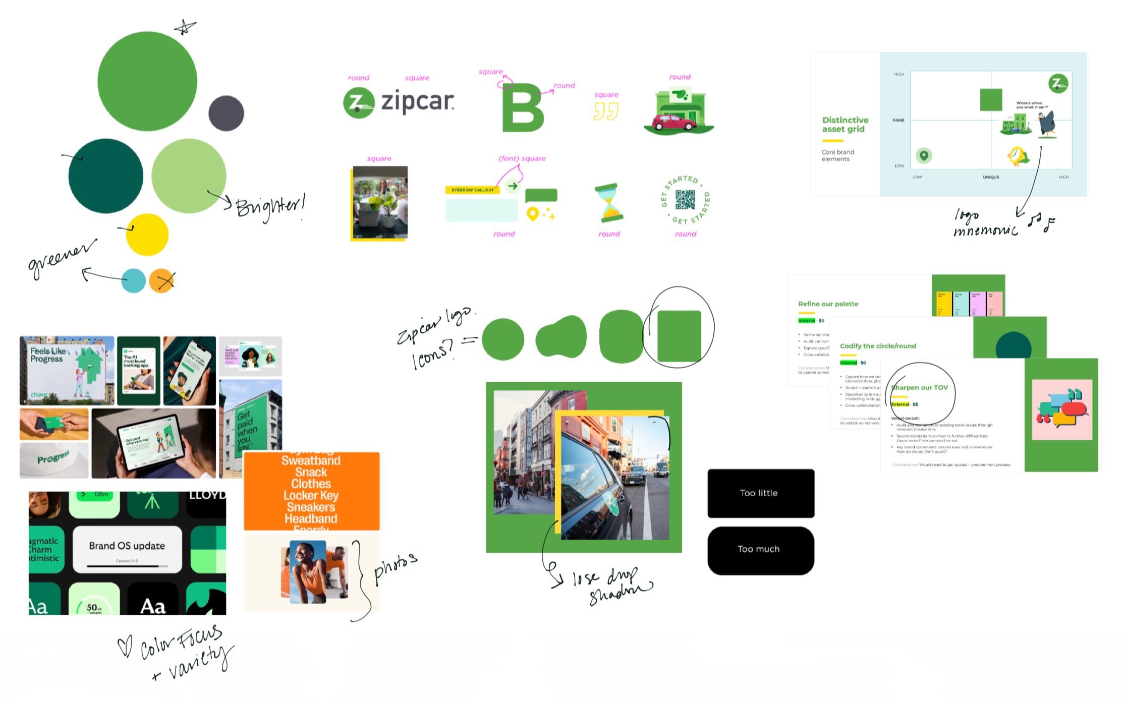 Zipcar’s green is one of our strongest brand signals. We refined the palette to feel more intentional and usable, keeping everything grounded in green so it stays cohesive. That thinking carried into our photoshoots, where we subtly worked green into props and wardrobe so it showed up naturally in lifestyle imagery.